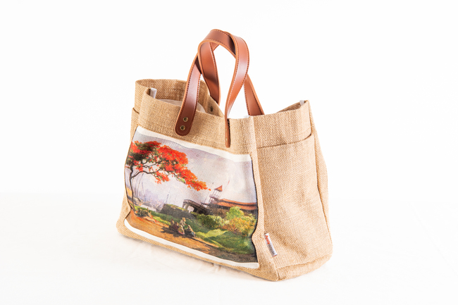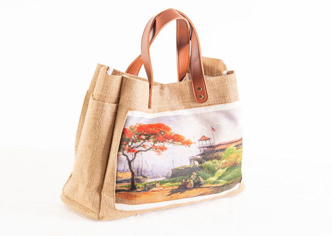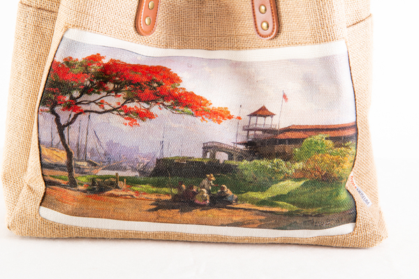 Amorsolo Jute Bag w/ synthetic leather handle (landscape with firetree)