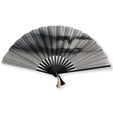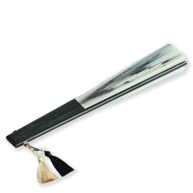 The artwork featured in this fan is a painting belonging to the Serie Blanca period (1975-1978) of the Spanish-Filipino artist, Fernando Zóbel (1924-1984). The title refers to Theobald Boehm (1794-1881), a German virtuoso composer and flautist who developed the modern flute. Zóbel often listened to classical flute music while working in his studio and was inspired by the parallel lines of a flute’s outline and its reflection as suggestive of landscape and its horizon.