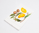 This product features details of a watercolor painting of a mango and chico (custard apple). It is part of a watercolor album by Jose Honorato Lozano (1815-1885) illustrating the inhabitants, costumes, traditions of 19th century Philippines. The album also includes images of fruits found in the country, both indigenous and introduced through the Manila-Acapulco Galleon Trade.